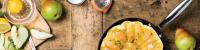 Ofen auf 190° C vorheizen. Zucker und Wasser in einer 24 cm großen, antihaftbeschichteten Pfanne auf niedriger Stufe unter Rühren aufkochen, bis sich der Zucker aufgelöst hat. Hitze etwas erhöhen und 7-9 Min. köcheln lassen, bis der Sirup eine hellbraune Farbe angenommen hat. Butter hinzufügen und rühren, bis die Butter geschmolzen ist und sich alles vermischt hat. Die Pfanne vom Herd nehmen und die Birnenviertel mit der Schnittseite nach oben leicht überlappend in den Karamell legen. Blätterteig darüberlegen und die Kanten umschlagen, damit alle Birnen vom Teig umhüllt sind. Blätterteig mit einer Gabel mehrmals einstechen. Für 35-40 Min. backen, bis der Teig goldbraun ist. 2-3 Min. abkühlen lassen. Die Tarte zum Servieren vorsichtig stürzen.