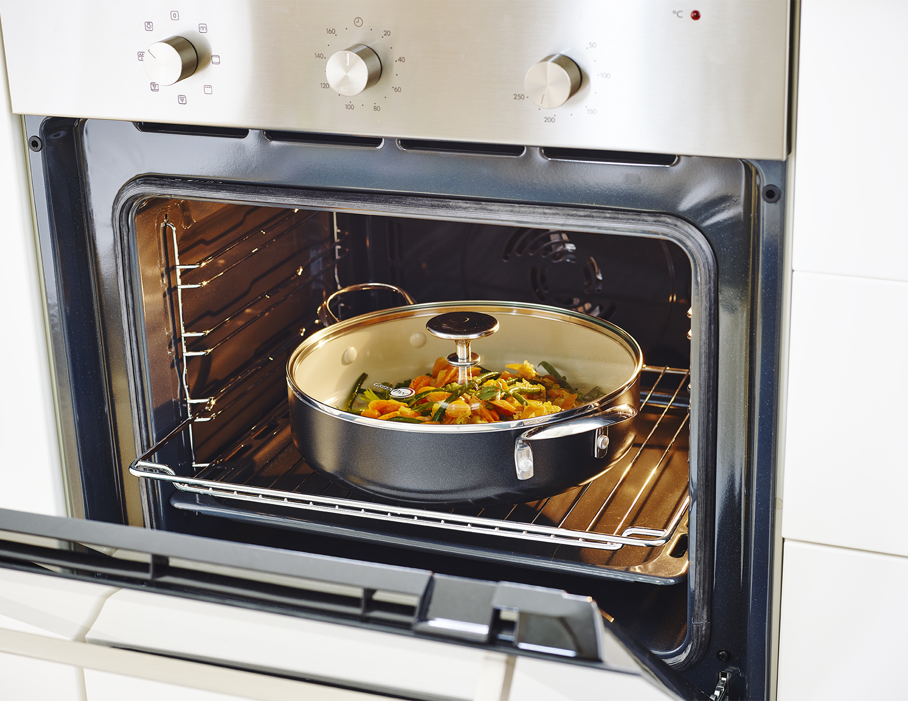 Like a famous fashion designer once said: ‘Black-and-white always looks modern, whatever that word means’. And modern is exactly what our brand-new Brussels range looks like. The Thermolon ceramic non-stick in cream makes a fresh and elegant contrast with the black aluminium exterior, while the ergonomic stainless steel handles provide a more confident grasp, even with thick oven mitts. Add to this GreenPan’s indispensable Magneto induction base, and you know why Brussels is written with a capital B!
