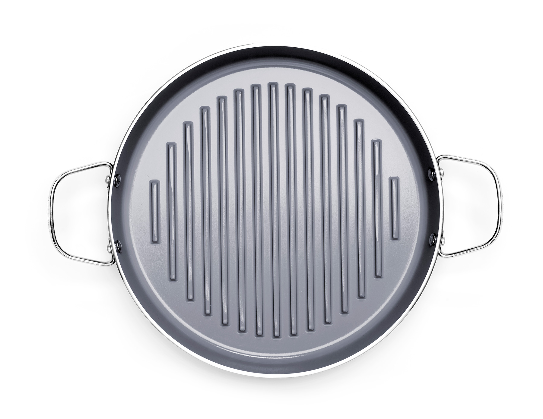 Imagine a pan that can grill almost anything with minimum oil or butter. Imagine that same grill pan has two stainless steel handles so it can go from hob to oven without a problem. Now assume that the Thermolon Infinity ceramic non-stick coating on the inside and the non-stick layer on the outside guarantee superb results and super easy cleaning. And suppose for a minute that this is our very first aluminium round grill pan ever with induction technology – the revolutionary Magneto induction technology.