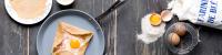 Hetta upp en pannkakspanna och smält smöret på medelhög värme. Vispa 2 ägg, vatten och smält smör i en skål tills det är ordentligt blandat. Blanda i salt, bovetemjöl och vetemjöl, lite i taget, vispa tills det har blivit en jämn smet. Hetta upp pannkakspannan igen på medelvärme och grädda bovetepannkakorna, en till två minuter på varje sida. Använd all smet.Lägg en pannkaka i en lätt insmord, uppvärmd stekpanna. Strö lite riven ost och skinka över pannkakan. Knäck ett ägg över och grädda i ca 3 minuter. Krydda med salt och peppar. Servera bovetepannkakorna med de fyra kanterna uppvikta, på ett fat.