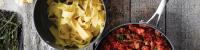 Sätt en kastrull på låg värme. Tillsätt olivolja, lök, morot och selleri och låt puttra på låg värme i cirka 10 minuter. Tillsätt finhackad pancetta och köttfärs, finfördela köttet med en träslev, låt koka i 10 till 15 minuter. Rör i en tesked salt. Häll vinet i blandningen för att koka ur pannan och rör om. Låt koka i ca 2 minuter tills vinet nästan avdunstat.Tillsätt tomaterna, mjölken, lite svartpeppar och krossad chili. Sjud försiktigt i cirka 30 minuter tills såsen har reducerats och tjocknat.Koka upp lättsaltat vatten i en stor pastagryta över hög värme. Tillsätt pappardelle i pastakorgen och koka enligt tillverkarens anvisningar tills al dente. Låt rinna av.Rör i smöret i såsen och smaka av med salt och peppar. Skeda upp såsen över pastan och servera med riven parmesanost.