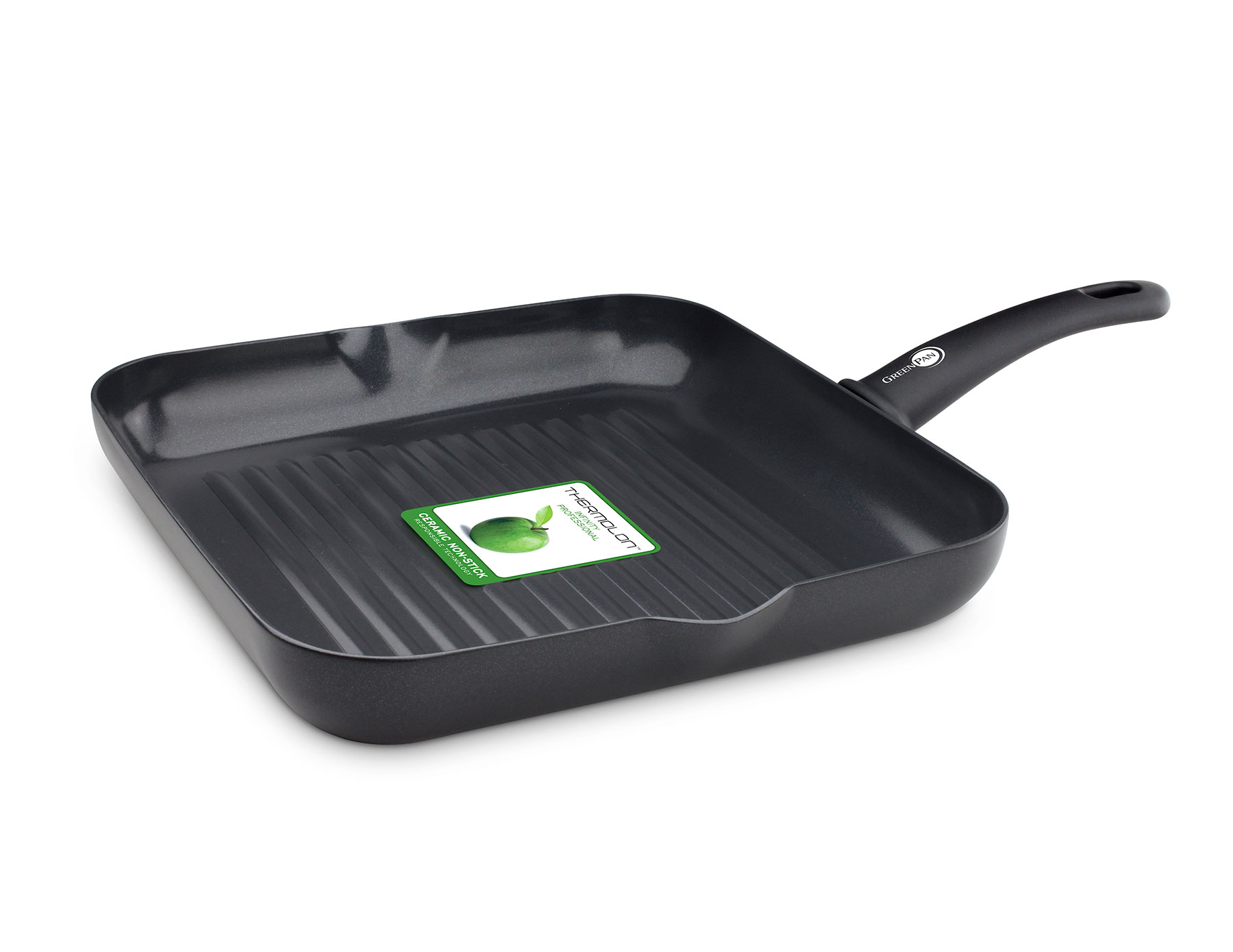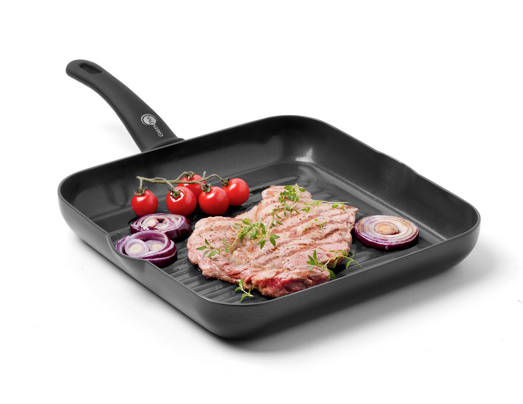 Κεραμικό αντικολλητικό τετράγωνο ραβδωτό τηγάνι με μαλακή λαβή και 2 στόμια εκροής