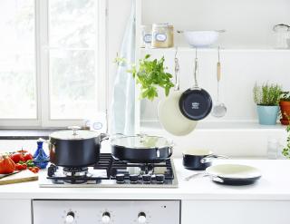 Like a famous fashion designer once said: ‘Black-and-white always looks modern, whatever that word means’. And modern is exactly what our brand-new Brussels range looks like. The Thermolon ceramic non-stick in cream makes a fresh and elegant contrast with the black aluminium exterior, while the ergonomic stainless steel handles provide a more confident grasp, even with thick oven mitts. Add to this GreenPan’s indispensable Magneto induction base, and you know why Brussels is written with a capital B!
