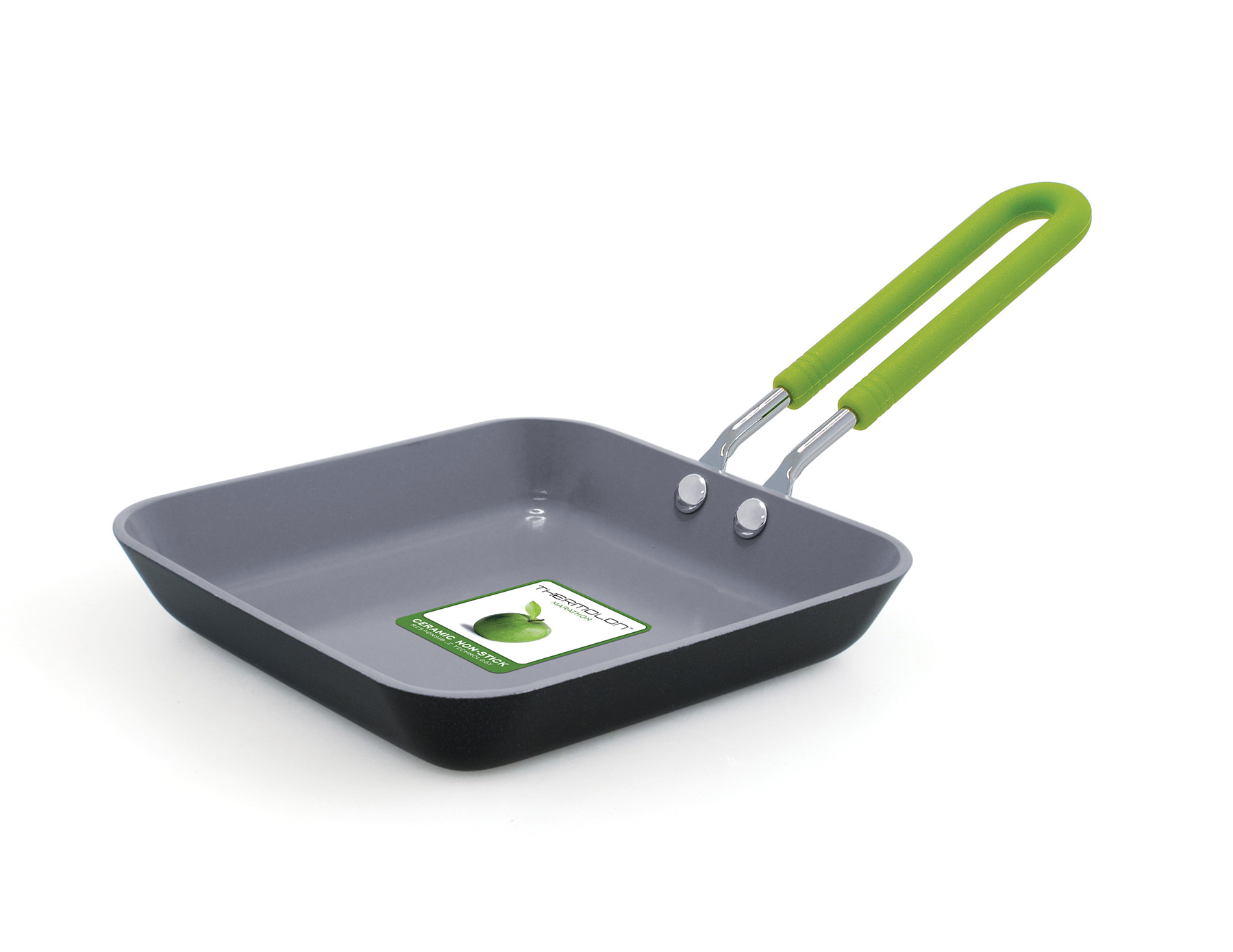 A pan doesn’t need to be big, just big enough. Our mini assortment is here to meet your every culinary need. Whether you fancy French toast, American pancakes, eggs & bacon or a cheeseburger, we have got the right pan with the perfect fit for the job. Fun and colourful, for creative cooks and kids with good taste. The maxi results of our mini pans are guaranteed by the ThermolonTM ceramic non-stick coating.