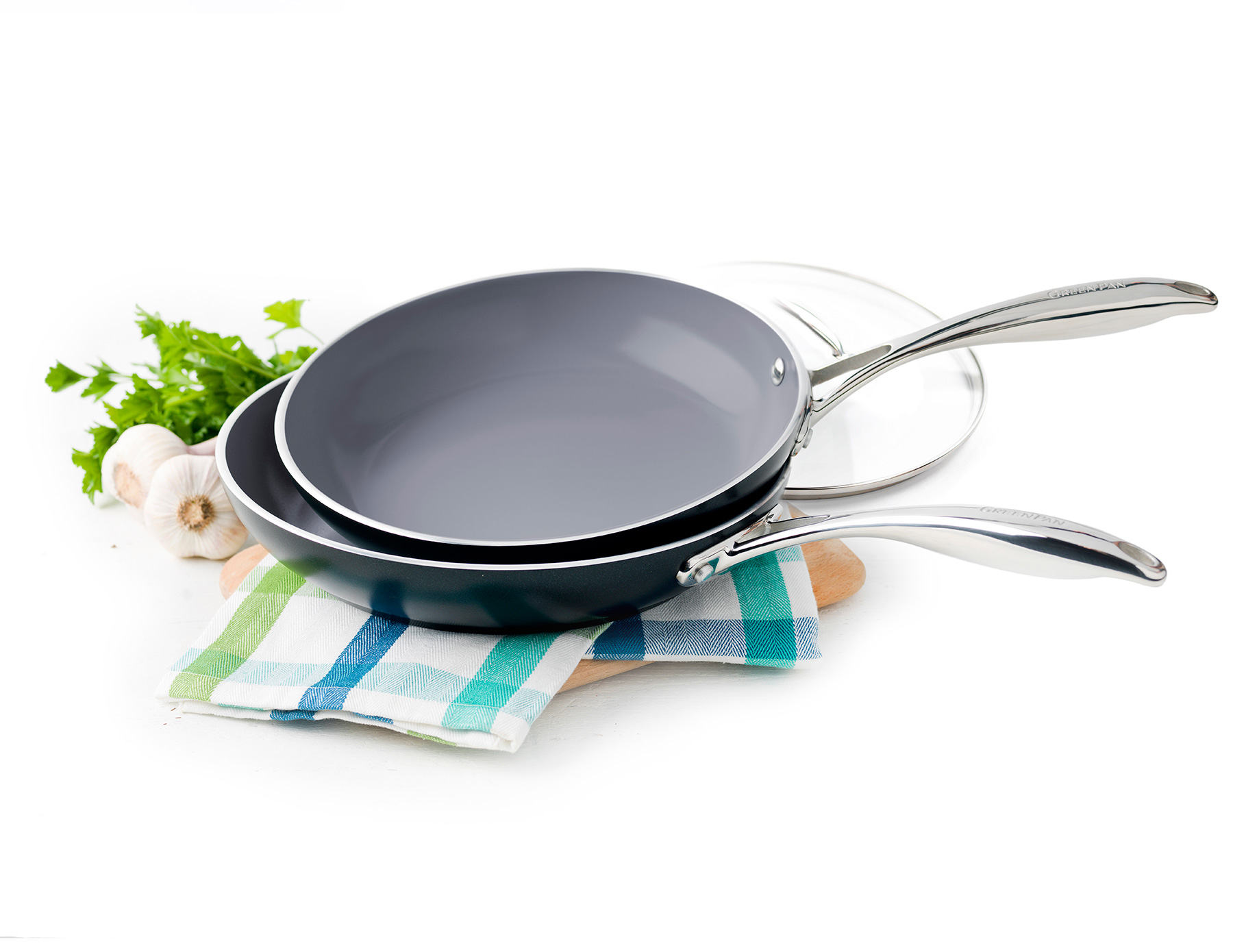 The GreenPan Stockholm collection couples timeless design with professional culinary performance. The stainless steel handles are stylish and comfortable, as are the lids which save you time and energy. In combination with the unique properties of the Thermolon ceramic non-stick coating, the result is a contemporary collection of elegant pots and pans. With this Stockholm Black aluminium collection, you can conjure up a delicious meal in an instant!