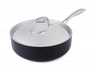 The GreenPan Stockholm collection couples timeless design with professional culinary performance. The stainless steel handles are stylish and comfortable, as are the lids which save you time and energy. In combination with the unique properties of the Thermolon ceramic non-stick coating, the result is a contemporary collection of elegant pots and pans. With this Stockholm Black aluminium collection, you can conjure up a delicious meal in an instant!