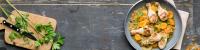 Heat the butter in a pan. Sauté the onion rings until transparent. Remove them from the pan and set aside. Season the drumsticks with chicken seasoning. Fry until golden brown on all sides. Add the sautéed onion, apricots and raisins to the pan. Cook for another few minutes. Pour over the chicken stock and bring to a boil. Reduce the heat and cover the pan, leave to cook for another 15 to 20 minutes over a low heat. Garnish with parsley.