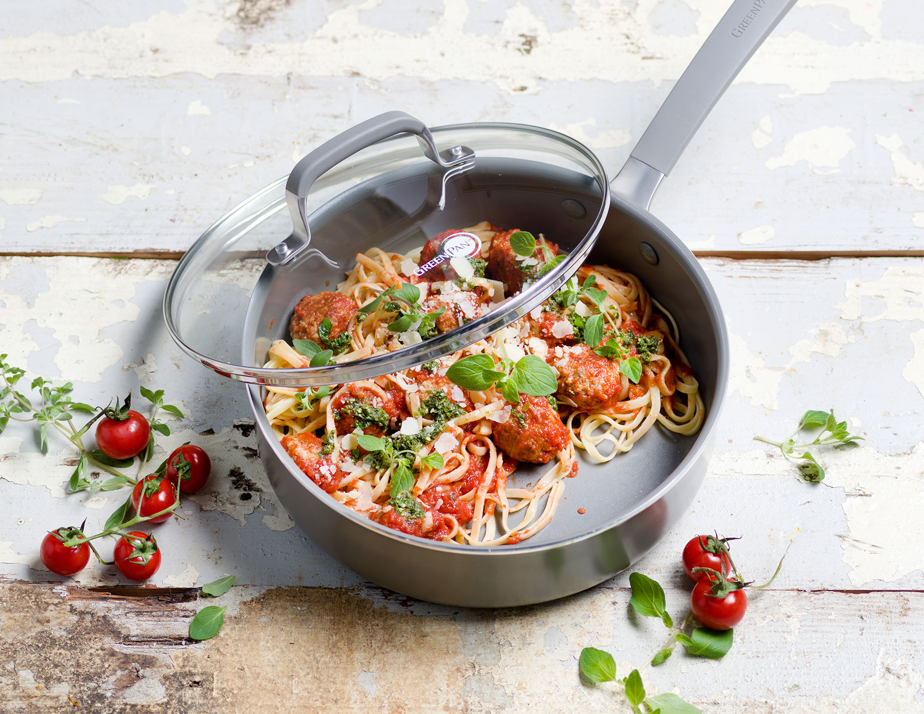GreenPans Melbourne-serie klarar allt från äggröra till frittatas! Melbourne värms upp snabbt och jämnt på spishällen tack vare den rejäla konstruktionen och Magneto-induktionsteknik som ger högsta energisparande prestanda på ALLA värmekällor. De nitade silikonhandtagen ger ett bekvämt och säkert grepp, glaslocket hjälper dig att hålla koll på maten utan att förlora värme och de droppfria kanterna gör det lättare att hälla. De är gjorda för att hålla länge vid intensiv daglig användning och maten släpper alltid.